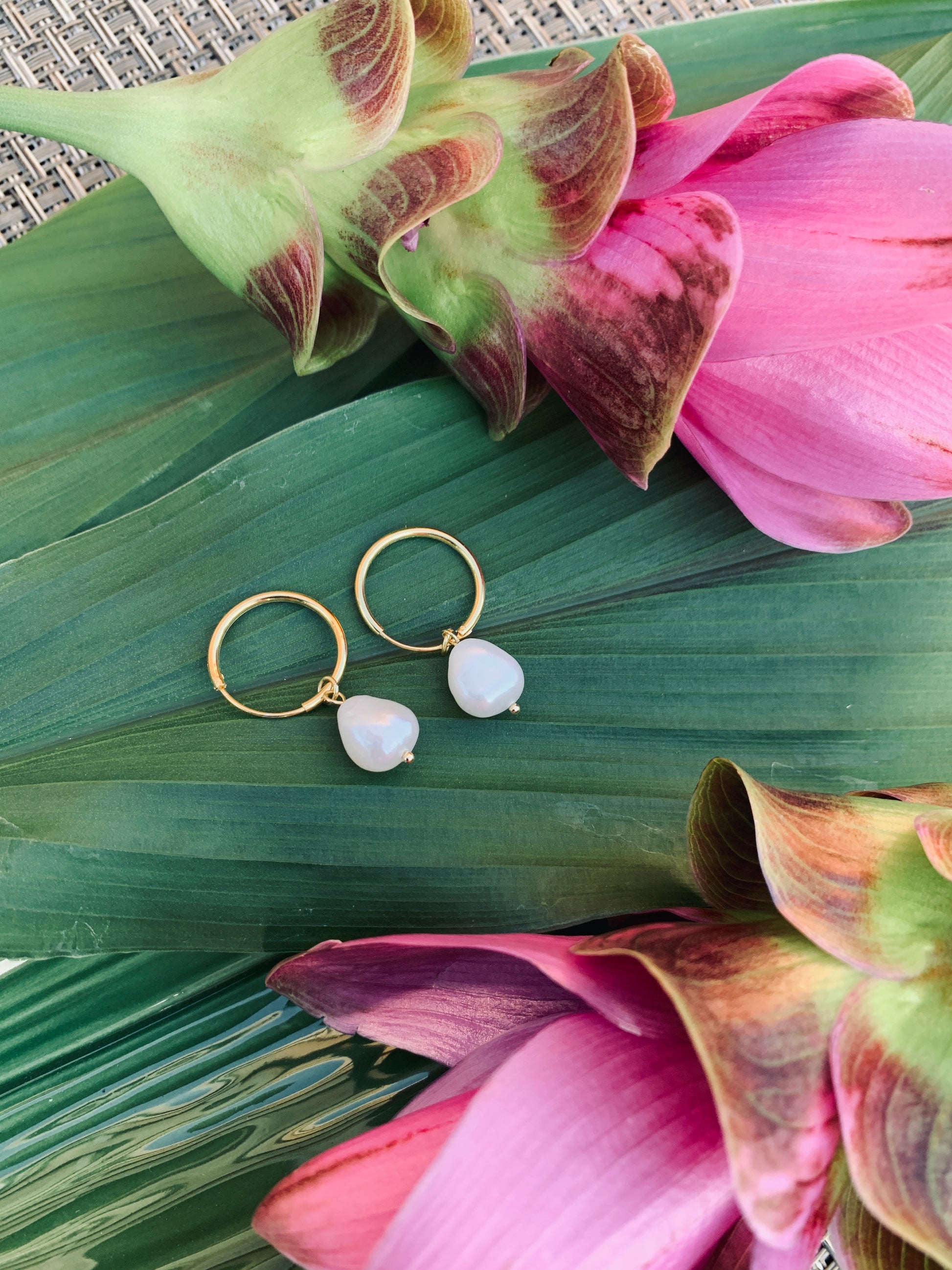 Die Ohrringe sind aus feinstem Sterling Silber gefertigt und sorgfältig mit einer Schicht aus 18 Karat Gold überzogen, um ihnen einen warmen, luxuriösen Glanz zu verleihen. Die daran hängenden Süßwasser-Perlen wurden sorgsam ausgewählt, um für ihren makellosen Glanz und ihre perfekte Form zu garantieren, was die Ohrringe zu einem wahren Blickfang macht.