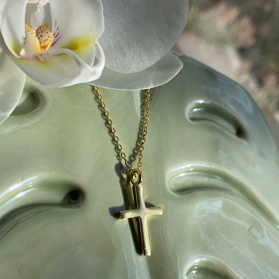 Erhabene Kette mit Kreuz-Anhänger aus Sterling Silber und 18 Karat Goldüberzug – ein Symbol für Glaube und Eleganz